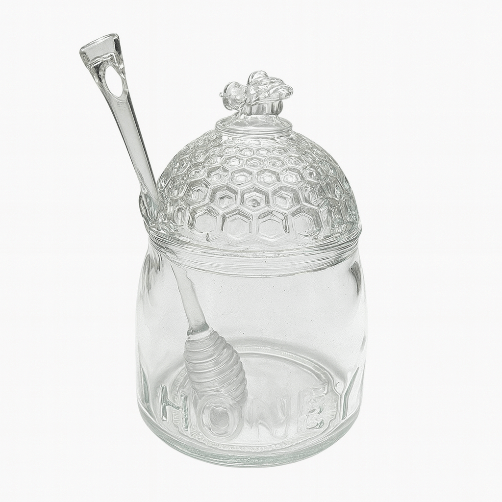جنس بدنه کار شیشه ای است. جنس قاشق عسل اکرولیک است. ابعاد ظرف 15×11 است. برند DENIZ . حجم ظرف 500 میلی لیتر میباشد.